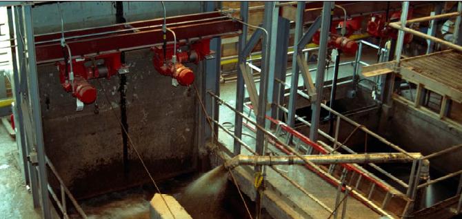 以下演示圖:絞車與鉸鏈式隔板連接和升起隔板準備凈化廢水;